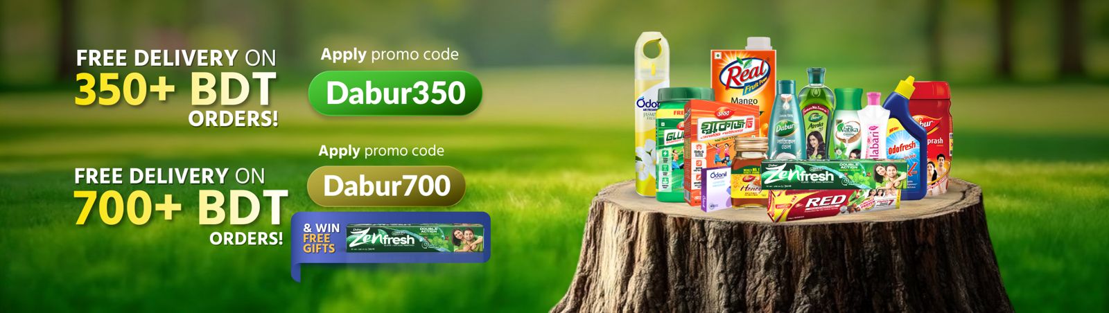 Use Dabur700 and Spend BDT 700+ to get free shipping and gifts!